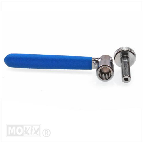 Dit set bestaat uit twee delen van een gereedschap waarmee men de kleppen van een viertakt scooter af kan stellen. Dit set is geschikt voor kleppen met een sleutelwijdte van 9mm.